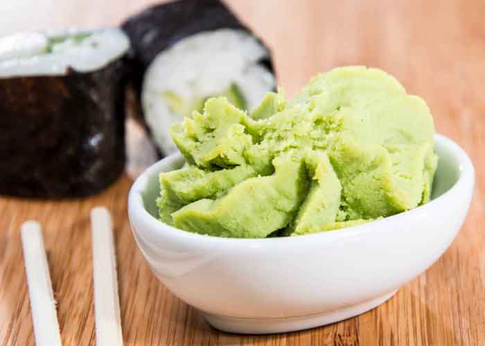Rallando este rizoma se obtiene el condimento, con propiedades antibacterianas, que realza el sabor de los platos de pescado crudo o soba (fideos de sarraceno).