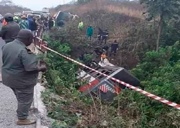 El camión, según las primeras informaciones, trató de adelantar a un autobús con pasajeros a bordo cerca de Ndiki, en el oeste del país, y chocó con él, cayendo seguidamente por un barranco hasta un río.
