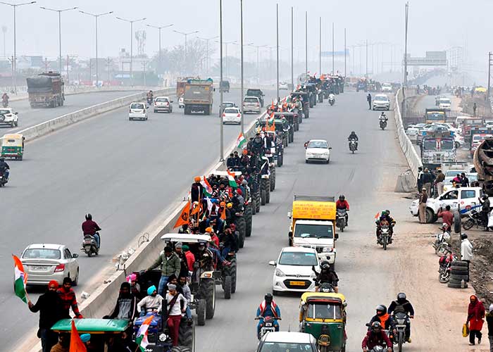 Cerca de dos mil tractores tomaron una de las principales autopistas que conecta la ciudad, convocados por las organizaciones campesinas para una nueva exhibición de fuerza tras 42 días de protestas en contra de las normas promovidas por el Gobierno y consideradas "anticampesinas", dijo a Efe Hannan Mollah, secretario general del All India Kisan Sabha (AIKS), una de las principales organizaciones opuestas a la reforma.