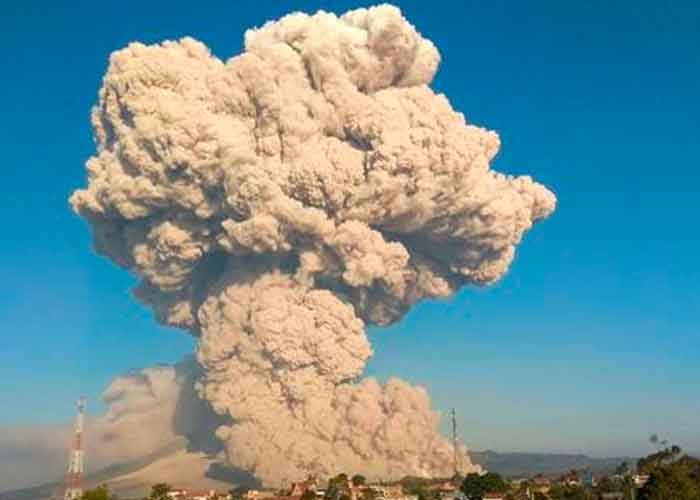 El volcán indonesio Sinabung emite columna de humo de 5.000 metros de altura