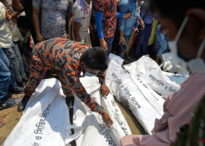 "Hasta ahora han muerto 20 personas en el accidente. Durante la noche recuperamos cinco cuerpos y hoy sacamos otros 15. Puede que haya más cuerpos en el interior" del barco, afirmó a Efe el jefe del servicio de bomberos local que dirige la operación, Abdullah Arefin.