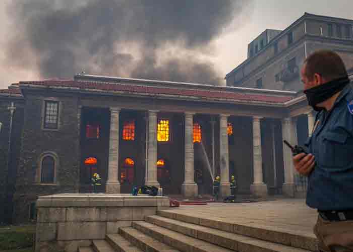 #Sudafrica??| Un incendio ha obligado a estudiantes de la Universidad de Ciudad del Cabo a evacuar, las llamas descontroladas incendiaron varios edificios, entre ellos la biblioteca Jagger, con 200 años de historia. Un bombero ha sufrido quemaduras y fue hospitalizado.#N4V pic.twitter.com/3GfjeHW3Tt