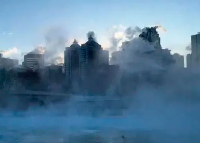 Las redes sociales, como Facebook y Youtube, se han llenado de videos que ofrecen una perspectiva impactante de ciudades completamente congeladas; con edificios sumidos en una densa neblina y humo blanco, y partes de ríos convertidos en hielo.