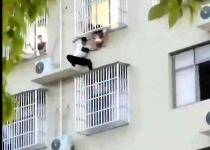 Hablando de actos heroicos, en la provincia de Hunan, China , un hombre arriesgó su vida para salvar a una pequeña de dos años tras ver que colgaba de los barrotes de una ventana, en un sexto piso.