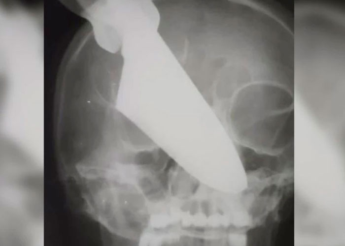 De tal manera que llegó el momento en que furioso, el hombre le clavó un cuchillo de 25 centímetros en la nariz. Mismo que claramente le dañó todo el rostro.