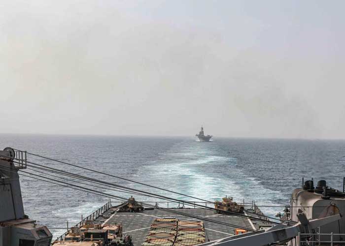 La tripulación abandonó el barco usando botes salvavidas mientras las fuerzas navales estadounidense-británicas se apresuraban a llegar al lugar de los hechos para ayudar, indicó UKMTO.