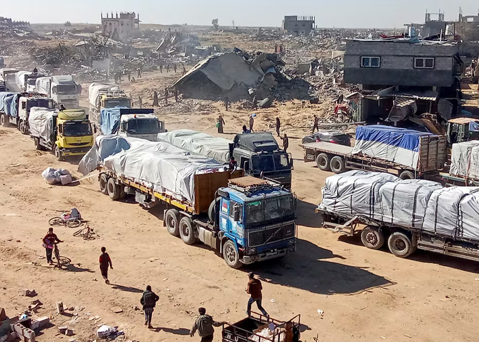 Los camiones han permanecido en espera en la frontera hasta que las autoridades israelíes, les otorgaran el acceso para seguir los objetivos propuestos con un paso seguro hacia su destino; en medio de la intensificación de los ataques de Israel a los territorios ocupados.