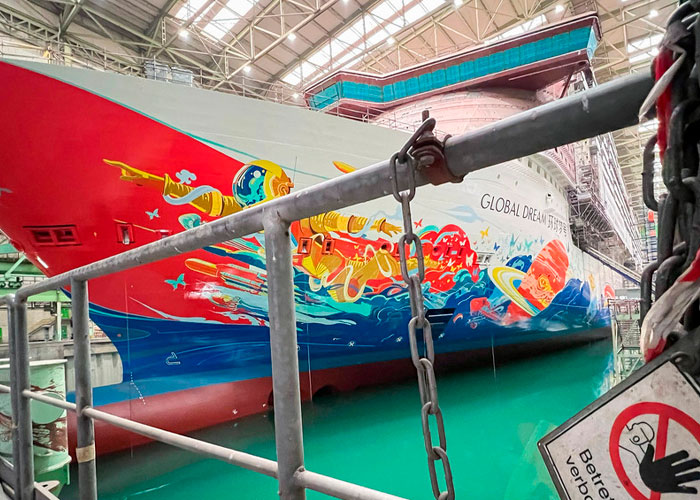 Global Dream, el otro barco de la serie, que actualmente permanece en el muelle de su fabricante, el astillero MV Werften, en Wismar (Alemania); no será desguazado, pero sí se venderá.