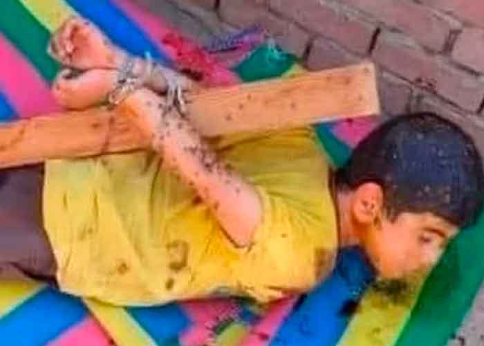 Una foto, que muestra al menor acostado con los brazos atados al poste en la espalda, se volvió viral después de que la madre del niño denunció este cruel hecho ante la Policía, en la ciudad de Shebin- al-Qanater .