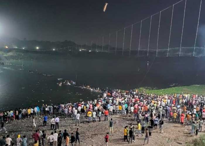 El puente de 140 años de antigüedad sobre el río Machchhu en Morbi, estado de Gujarat; que recientemente fue restaurado se derrumbó alrededor de las 6:30 de la tarde (hora local de India); mientras cientos de personas pasaban por la infraestructura.