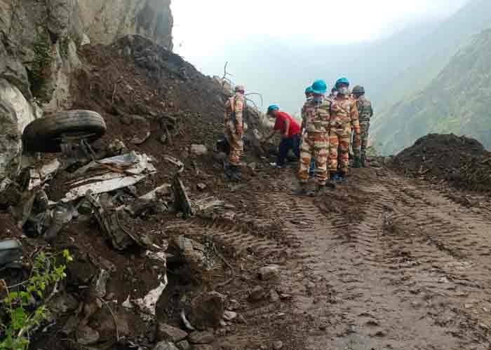 A landslide reported on Reckong Peo- Shimla Highway in #Kinnaur District in Himachal Pradesh today at around 12.45 Hrs. One truck, a HRTC Bus and few vehicles reported came under the rubble. Many people reported trapped. ITBP teams rushed for rescue. More details awaited. pic.twitter.com/ThLYsL2cZK