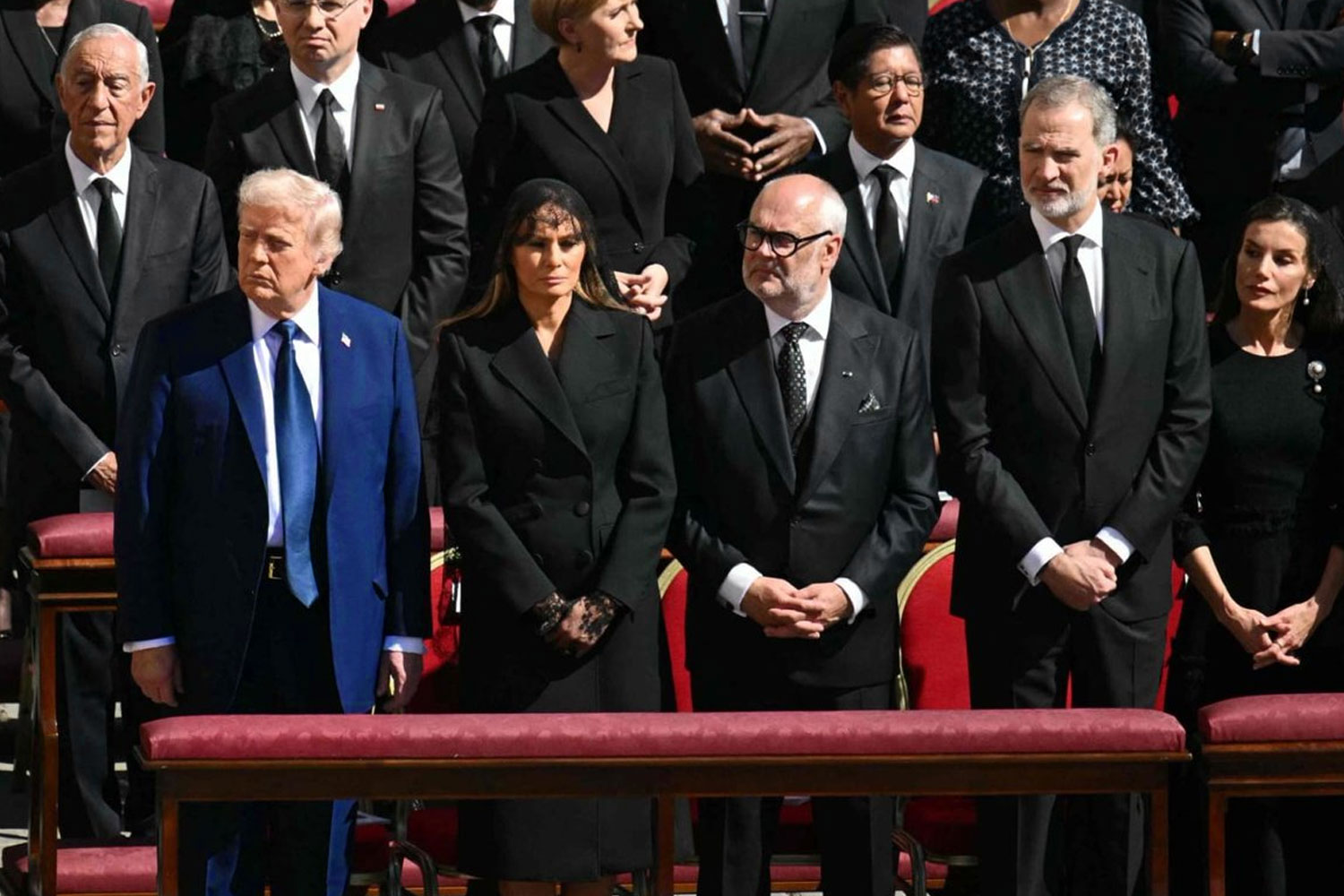 Sentado en primera fila, Trump contrastaba notablemente con líderes como Emmanuel Macron y el rey Felipe VI; quienes sí respetaron el protocolo usando trajes negros tradicionales, de acuerdo con las directrices del Vaticano.