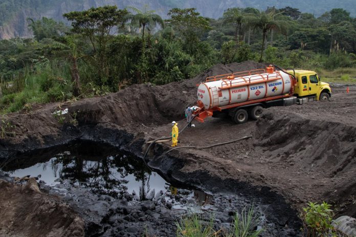 El viceministro ecuatoriano de Hidrocarburos, Guilhermo Ferreira, junto con el gerente general en funciones de la empresa estatal petrolera Petroecuador; Roberto Concha que gestiona el Sote, supervisaron las tareas de respuesta al derrame en la zona del Vergel, Quinindé.