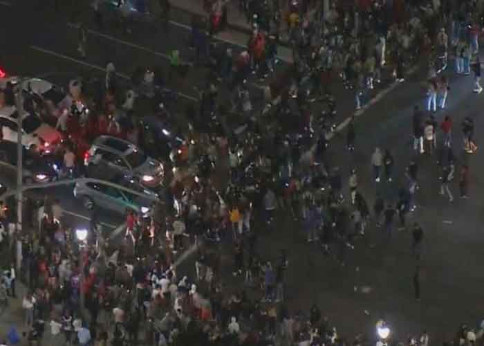 Pese a estos preparativos, el Departamento de Policía de esta ciudad del sur de California dijo en un comunicado que la turba de gente se volvió «ingobernable».