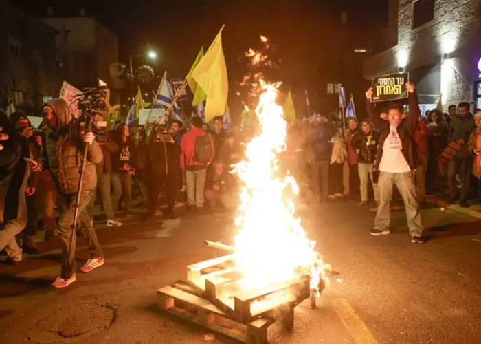 Hundreds of Israeli settlers are demonstrating outside Netanyahu's residence in occupied Jerusalem, demanding the completion of a prisoner exchange deal with the Palestinian resistance. pic.twitter.com/FuCL41oQL8