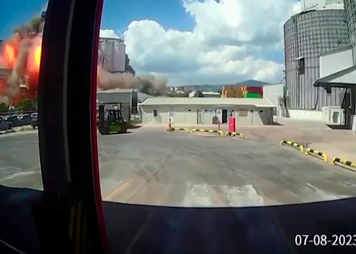 Según NTV, medio de comunicación de Turquía anunció; que en los depósitos de cereales del puerto de Derince se almacena trigo destinado a la exportación, con una capacidad total de 100 mil toneladas, y la explosión dañó 13 silos, que están perdiendo grano.