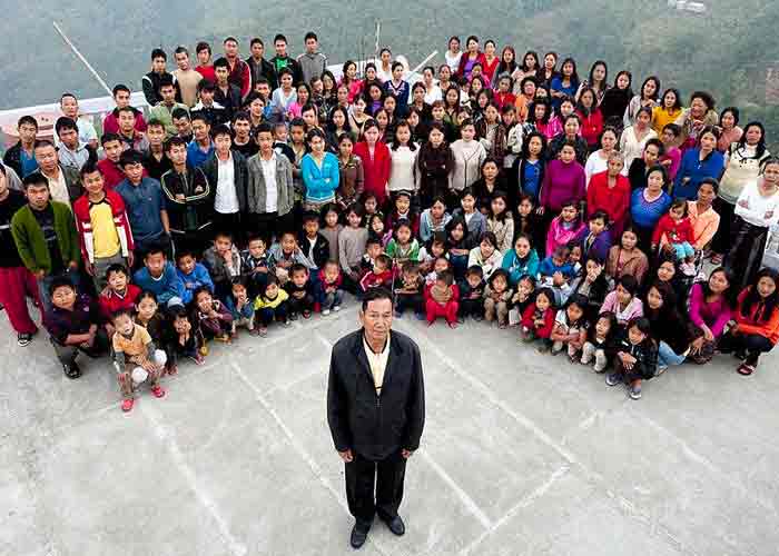 Ziona Chana, nacido en 1944 en el estado de Mizoram y líder de una secta cristiana que practica la poligamia; engendró 94 hijos y contaba además con 33 nietos, una familia de más de 180 personas.