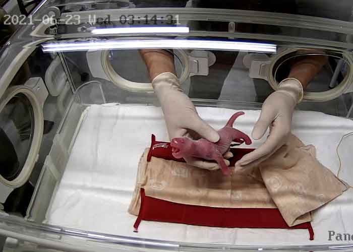 Los pandas gigantes no suelen cuidar de dos crías al mismo tiempo, por lo que el zoo decidió poner a uno de los recién nacidos en una incubadora.