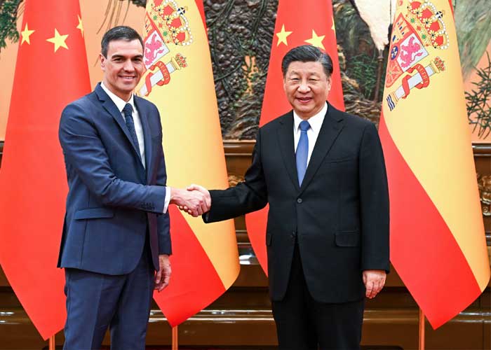 Previamente, Sánchez se reunió con el primer ministro chino, Li Qiang, encuentro en que las partes se comprometieron a más esfuerzos; para fortalecer los lazos bilaterales y Li le trasmitió que Beijing y Madrid pueden trabajar para impulsar el comercio y la inversión. Asimismo, resalta fortalecer la sinergia de las industrias y fomentar la cooperación en áreas como nuevas energías y materiales avanzados.