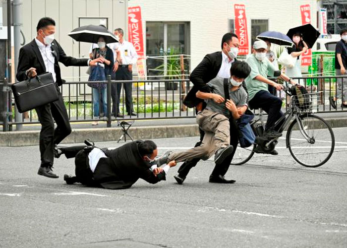 El autor del ataque fue inmovilizado en el mismo lugar de los hechos por los servicios de seguridad de Abe antes de ser detenido por la policía. Según puede verse en imágenes captadas por la cadena estatal NHK.