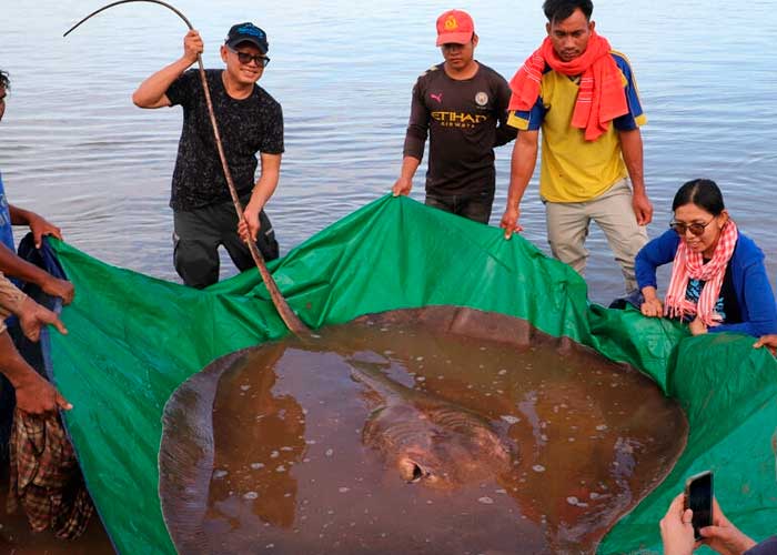 La raya fue capturada accidentalmente la semana pasada en la provincia de Stung Treng (norte), por haberse tragado a un pez más pequeño que había mordido el anzuelo de los pescadores.