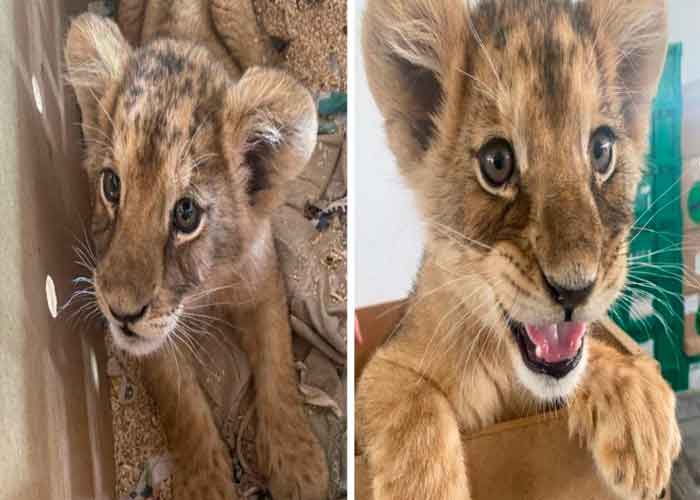 ??La @PROFEPA_Mx recibió de la @GN_MEXICO_ una cachorra de león africano que era transportada en una caja de madera.