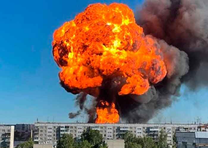 La impactante columna en forma de hongo, de fuego y llamas, -que, según Tass, alcanzó 800 metros cuadrados- captada en múltiples videos que circularon en redes sociales.