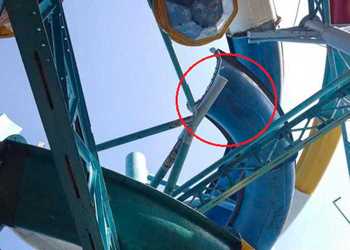 En un video quedó gravado el aterrador momento que un tobogán se desprendió