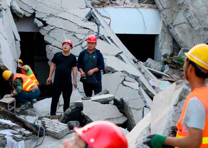 Las imágenes publicadas por el canal oficial CCTV mostraban a decenas de socorristas con cascos trabajando en el lugar de la catástrofe junto a una montaña de escombros.