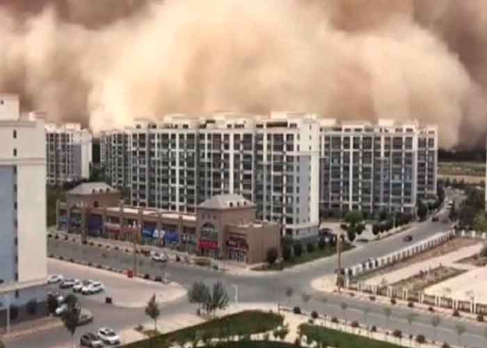 El curioso fenómeno generó un “muro” de arena de unos 100 metros de alto que cubrió la localidad, detalló la AFP.