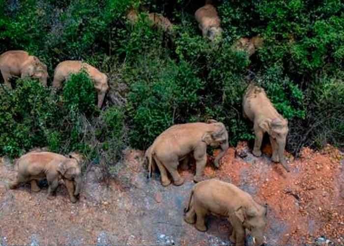 Una manada de elefantes asiáticos se encuentran migrando hacia el norte en la provincia meridional china de Yunnan y han atravesado varias poblaciones por el camino, por lo que las autoridades han puesto en marcha un dispositivo para minimizar los daños del contacto entre paquidermos y humanos.