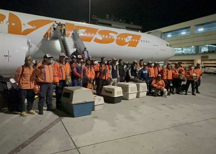Los brigadistas, pertenecientes a Protección Civil, Bomberos y la Fuerza de Tarea Humanitaria Simón Bolívar; partieron en horas de la madrugada de este miércoles desde el Aeropuerto Internacional de Maiquetía en el estado La Guaira.