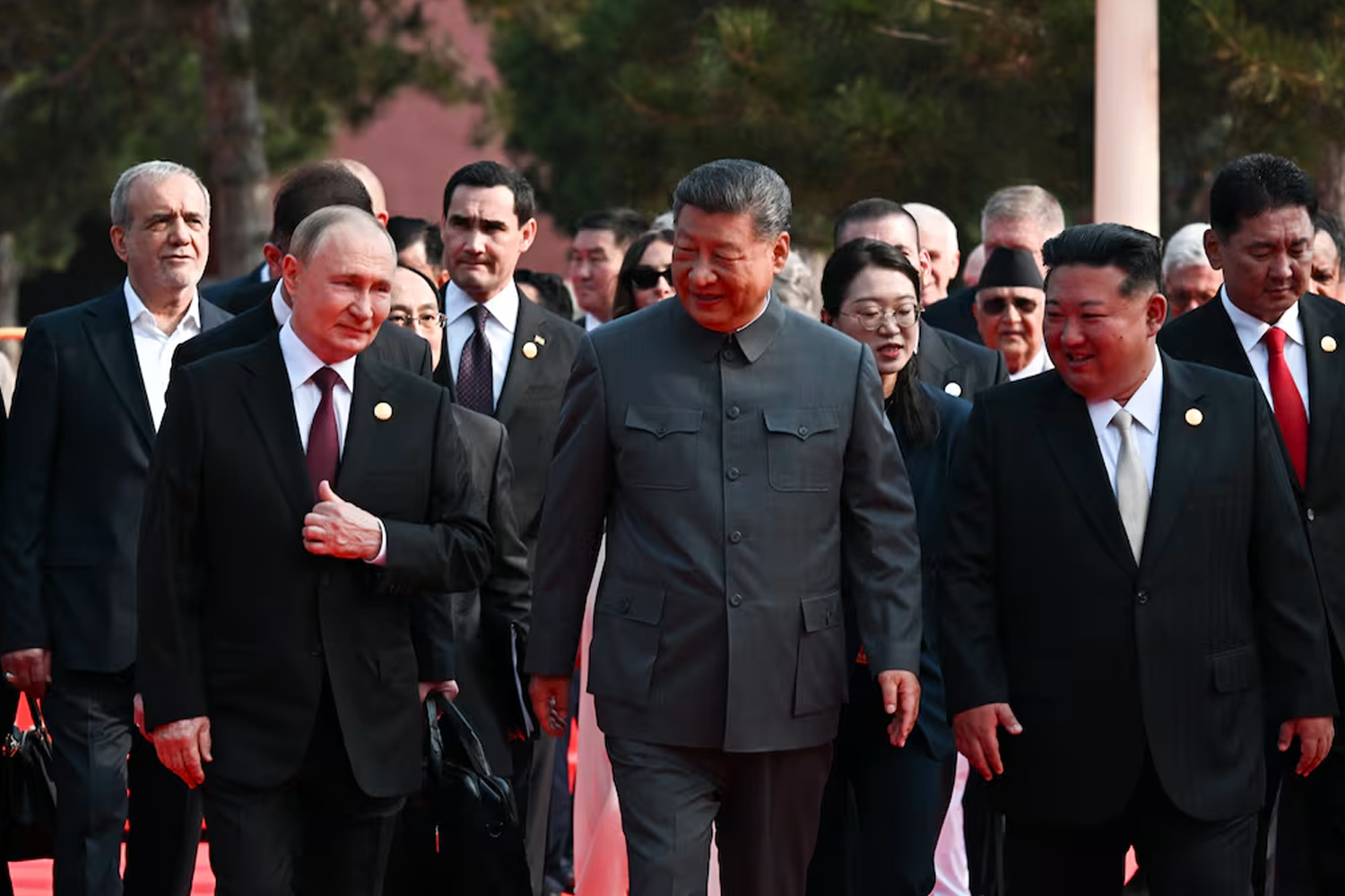 🇷🇺 🇨🇳🇰🇵Putin conversó con Xi Jinping y Kim Jong-un mientras se dirigían a las tribunas del desfile en Pekín.