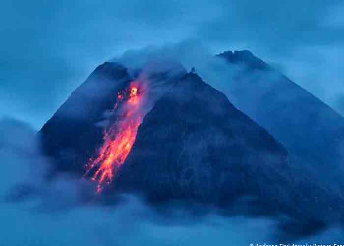 La última erupción importante del Merapi, en 2010, mató a 347 personas. Se recomendó a los aldeanos que viven en las fértiles laderas del Merapi que se mantuvieran a 5 kilómetros (3,1 millas) del cráter.