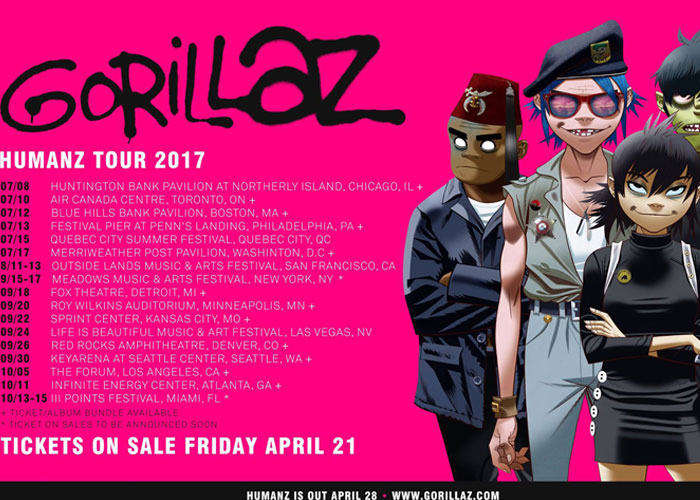 Según anunciaron a través de sus redes sociales, las personas que compren en línea a partir del 21 de abril en algunas de las fechas presentadas recibirán ya sea una copia física o digital del álbum Humanz, del cual ya se han desprendido varios sencillos que tienen a muchos con expectativa de volver a escuchar algo nuevo y fresco de Gorillaz.