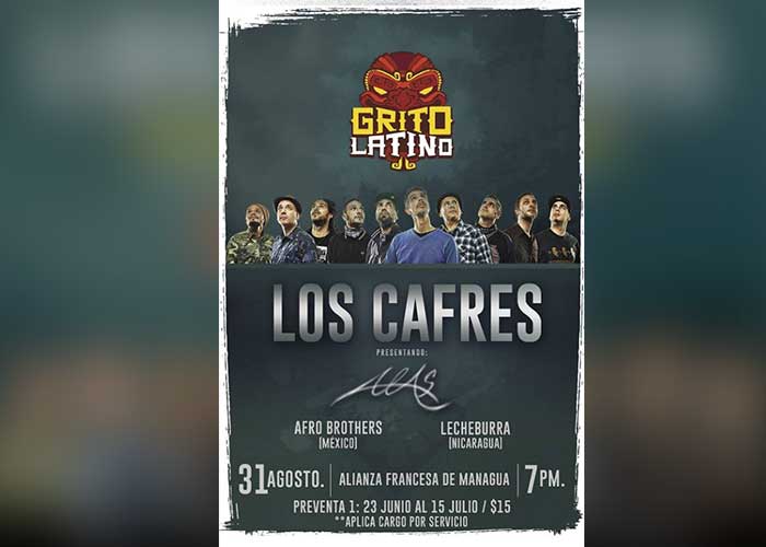 Las bandas argentinas que han resaltado en la mezcla de reggae, ska, rock y otras variables, continúan aventándose a conocer Nicaragua, ya que este sábado desde el Facebook oficial de Los Cafres se anunció su visita a tierra pinolera el próximo 31 de agosto.
