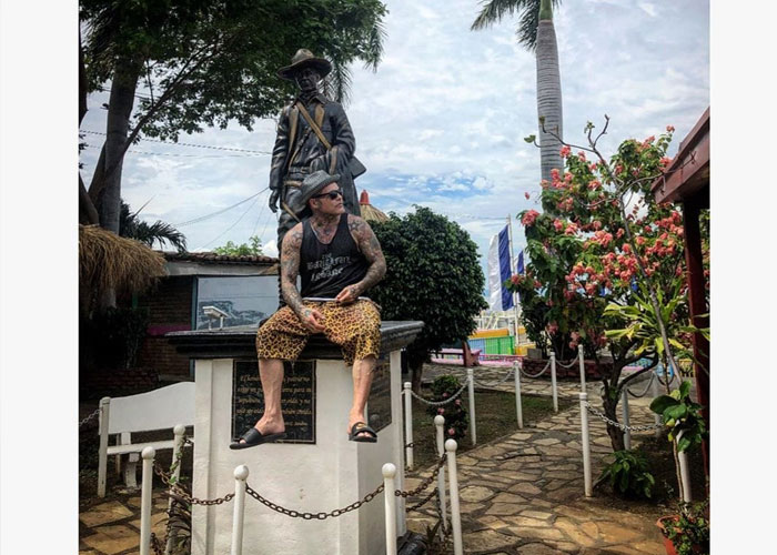 En su estadía por Nicaragua, el músico no se quedó quieto y se rifó a conocer distintos lugares maravillosos que tiene la tierra de Darío y Sandino, incluso se tomó una foto con una estatua del General de Hombres y Mujeres Libres.