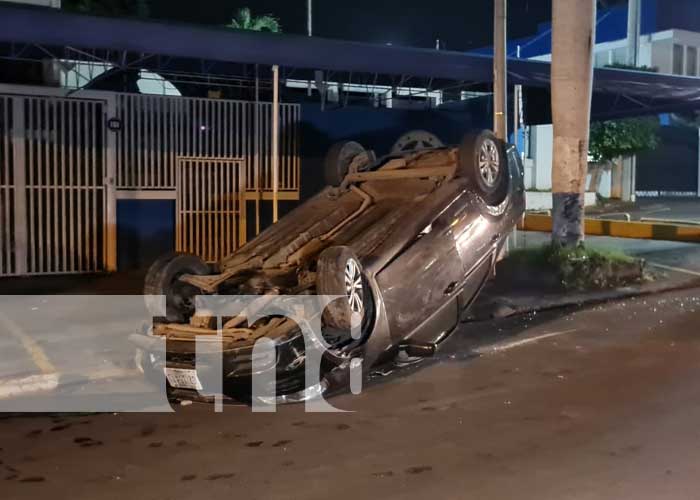 Carro se vuelca y su conductora vive para contarlo en Managua