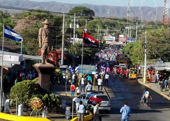En tal sentido pobladores, Juventud Sandinista, hombres y mujeres todos, realizaron una caminata y posteriormente depositaron ofrendas florales en el monumento al héroe nacional ubicado en la entrada al municipio de Ciudad Sandino, a unos diez kilómetros al noerte de la capital.