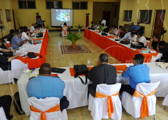 Monseñor René Sándigo, obispo de la Diócesis de Juigalpa y de Río San Juan, y 40 sacerdotes sostuvieron el martes un importante encuentro con el segundo jefe de la Dirección de Tránsito de la Policía Nacional, el comisionado Norman Castellón, en el auditorio de la casa cural de la iglesia de San Pedro De Lóvago, en Chontales.