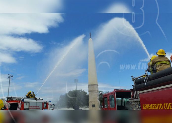 La práctica consistió en conectar desde un hidrante a un carro de bomberos, los miembros extendieron una manguera que al mismo tiempo se conectó con otras dos unidades bomberiles, en sí realizaron una conexión de 5 cuadras, desde el parque central de Managua hasta la Plaza La Fe.