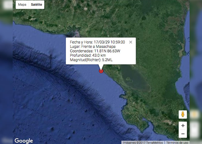Se conoce que el temblor fue de 5.2 grados en la escala de Richter a 14 kilómetros al oeste de Masachapa, el cual tuvo una profundidad de 43 kilómetros, información corroborada por el INETER.