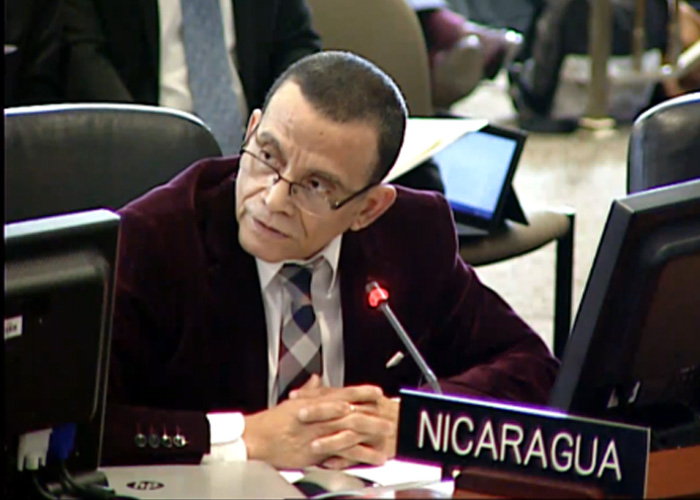 “La delegación de la República de Nicaragua, se solidariza con el pueblo y gobierno de la República Bolivariana de Venezuela y considera inadmisible que sin la aprobación de sus autoridades se haya convocado a esta sesión extraordinaria del Consejo Permanente y quiere expresar su más firme rechazo a que se continúe debatiendo la situación de este hermano país, sin consentimiento”, señaló el representante de Nicaragua ante el organismo, Luis Alvarado.