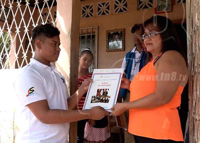 “Venimos de parte del Comandante Daniel y la Compañera Rosario, en este mes de las madres para entregarle su título de propiedad como parte de todos los programas socio productivos que nuestro Gobierno impulsa para la seguridad de las familias”, dijo el joven Kener Castillo.