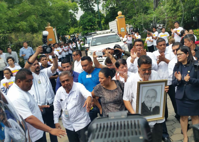 Los restos mortales del padre Miguel recorrieron las principales avenidas de la ciudad y a su ingreso a la Cancillería, los nicaragüenses aplaudieron sin cesar.