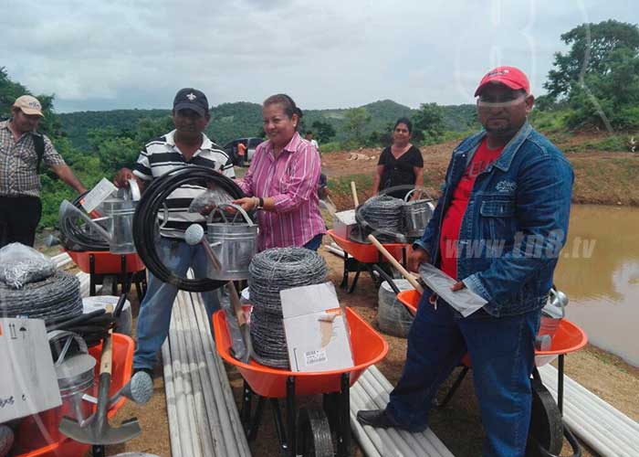 En esta comunidad fueron beneficiadas seis familias a quienes se les entregó equipos para uso agrícola como: mangueras de goteo, mangueras lisas, dos regadoras, seis unidades de tubos de dos pulgadas, una caja de kits de pvc, una libra de teflón, una carretilla, dos machetes, dos rollos de alambre de púa, una pala y ocho libras de grapa.