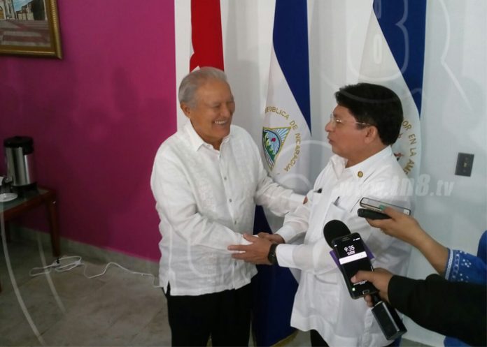 El canciller de la república Denis Montada y el embajador de ese país en Nicaragua lo han recibido en el salón diplomático de la terminal aérea.