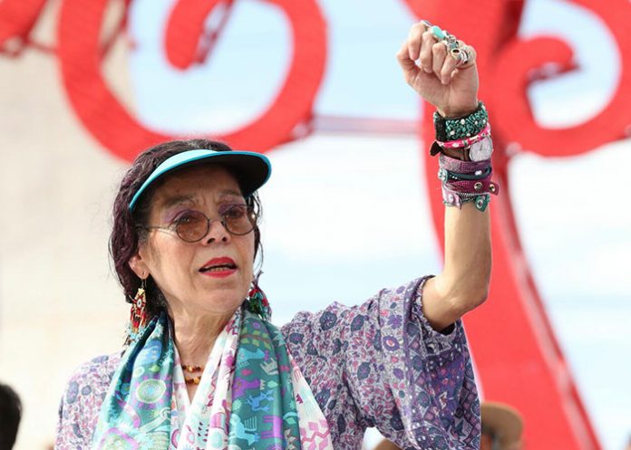 Rosario Murillo, Vicepresidenta de la República de Nicaragua, se dirigió este miércoles 19 de julio desde la Plaza La Fé, ante miles de nicaragüenses al celebrarse el 38 aniversario del triunfo de la Revolución Popular Sandinista.