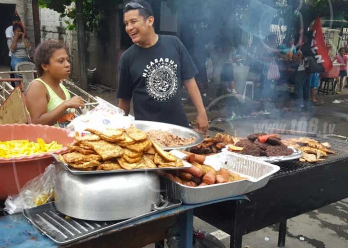Los platillos populares nicaragüenses no faltaron en la ruta hacia la Plaza la Fe, donde miles de personas se dirigieron para celebrar el 38 aniversario de la Revolución. Los locales de comida y puestos improvisados que se encuentran a lo largo de toda la Avenida Bolívar ofrecieron variedad de estos.