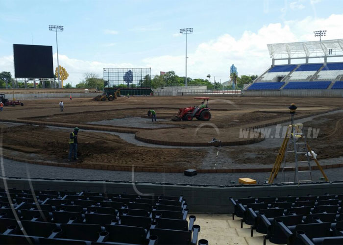 El proyecto que es el más importante de las últimas décadas en Managua ya tiene instalada las 15 mil butacas para los aficionados, el sistema de luminarias, el sonido y el próximo reto para las próximas tres semanas es la instalación de la grama, en este último punto el Secretario General explicó que están siendo muy cuidadosos para evitar que el agua en el terreno se estanque.